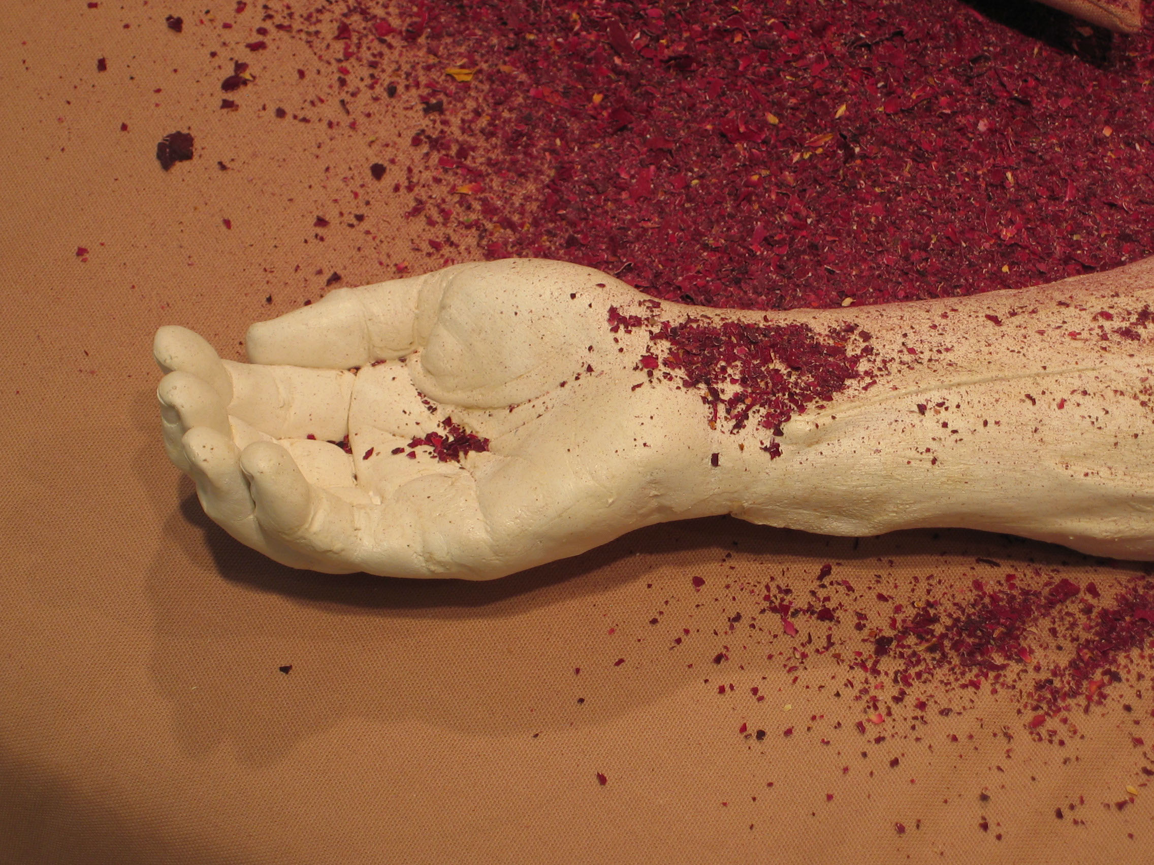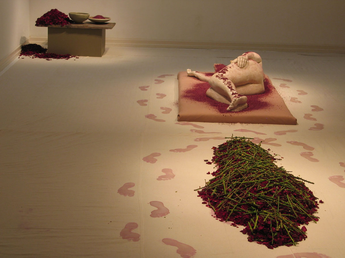 The installation “Renascent” expresses feelings and memories about the circular loop of coping with adversity. Problems are a part of our existence. Dealing with them, keeping them from piling too deep, takes continual attention. I see the processing of afflictions as a continuous cycle that is rarely performed alone. Renascent means “coming again into being,” and refers to the part of the cycle where we become renewed in psyche, restored in health, and regenerated in spirit.